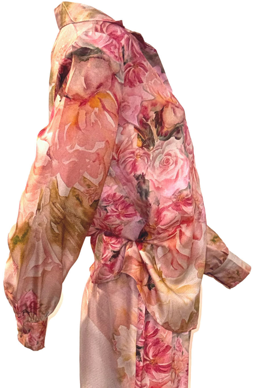 Crafted from luxurious 100% silk twill, the Flowers from Julia Silk Blouse features Javad Ziaolhagh’s original watercolour artwork translated into soft, painterly digital tones. Elegant, breathable, and refined, this blouse brings artful sophistication to any wardrobe.
