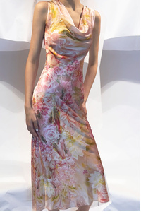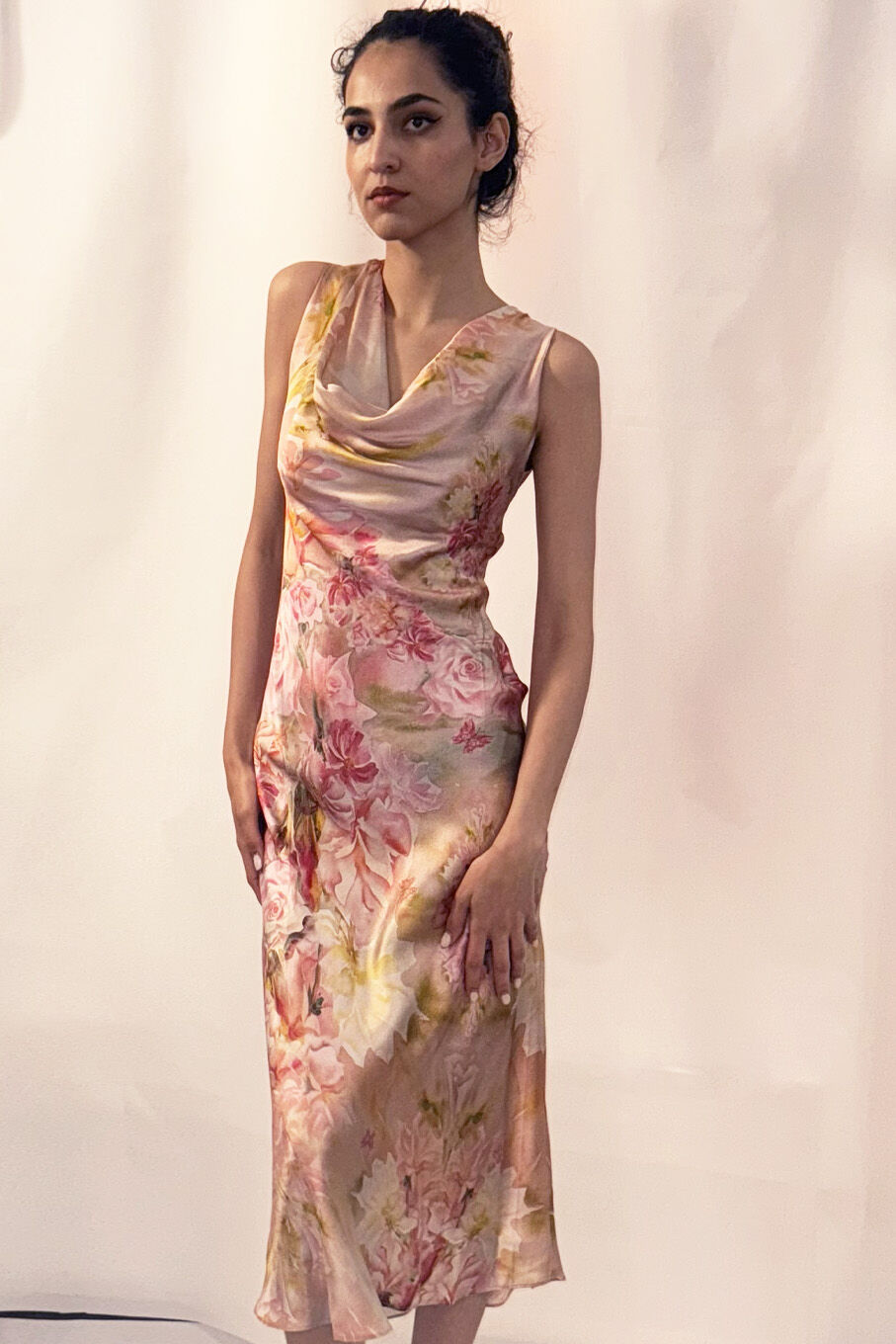 A standout statement piece from the Summer 25/26 Collection, the Flowers from Julia Dress captures the softness of watercolour and the refined flow of silk, perfect for special occasions and evening wear.