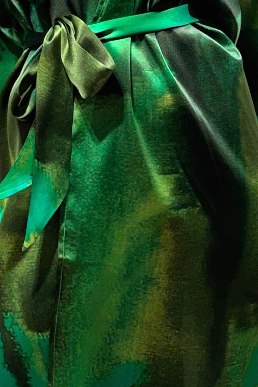 Style it with the JAVAD Forest Green Silk Chiffon Wrap or layer it over a silk dress for an elegant finish.