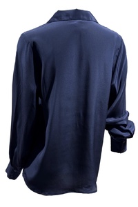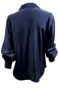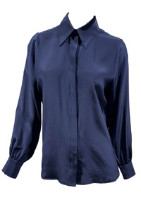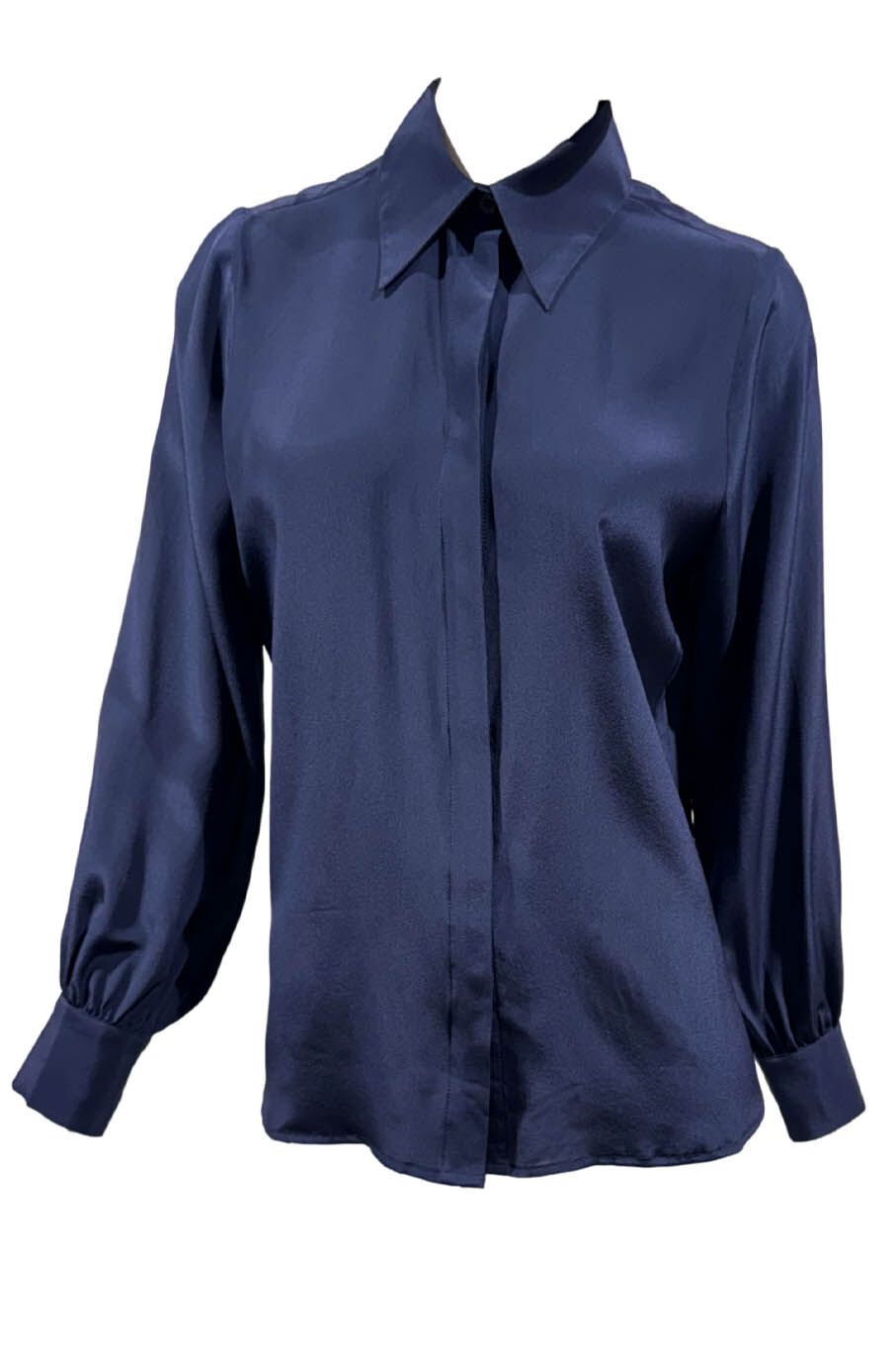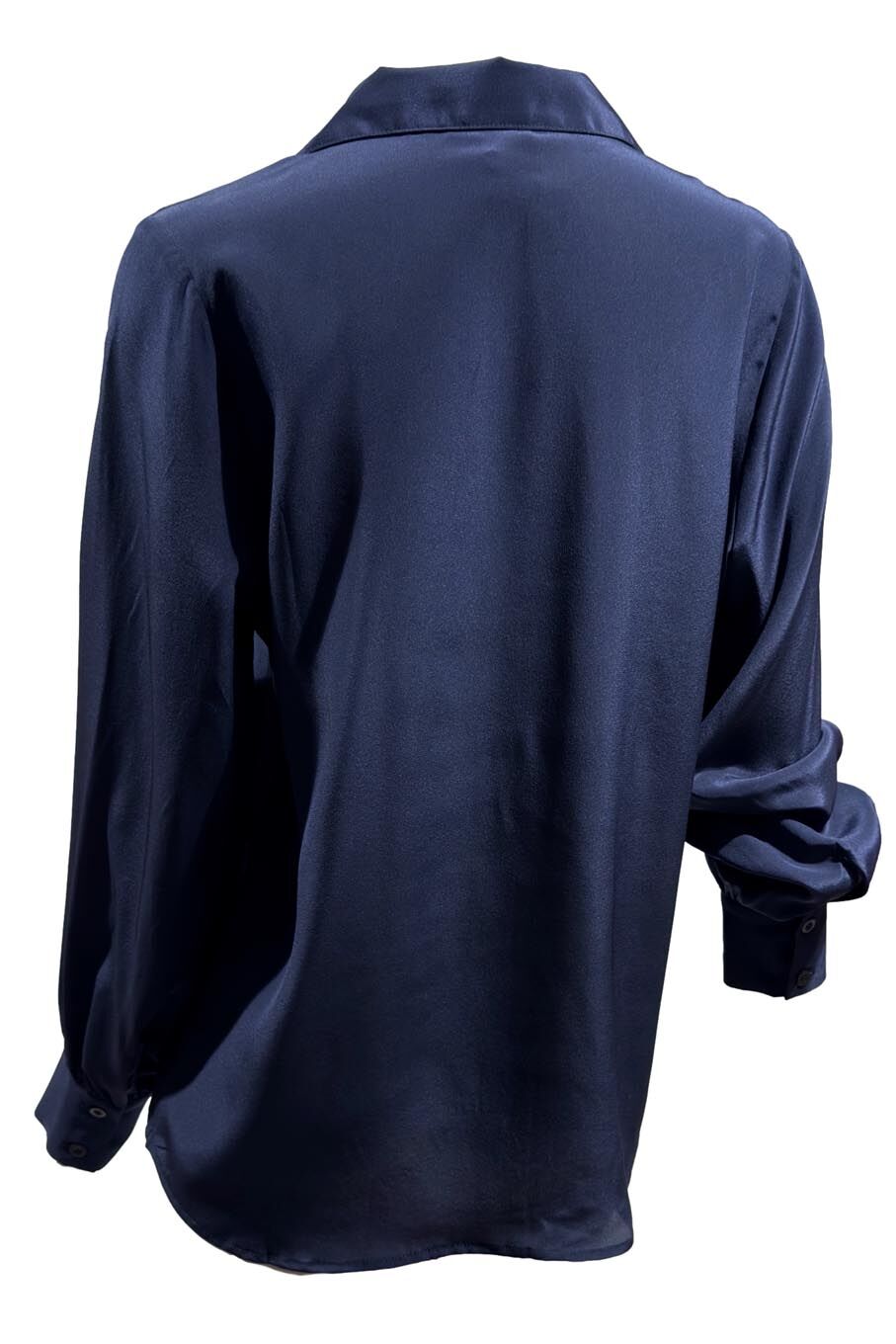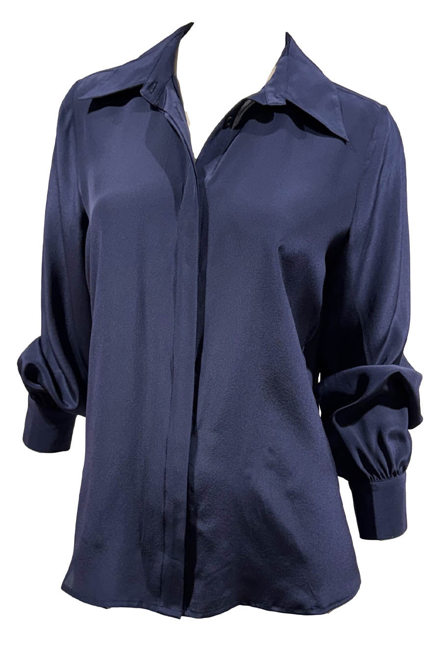 The Midnight Navy Silk Blouse by JAVAD is a timeless essential that combines sophistication with versatility. Made from 100% silk crepe, the blouse offers a soft, matte finish and fluid drape, ensuring comfort and elegance with every wear.