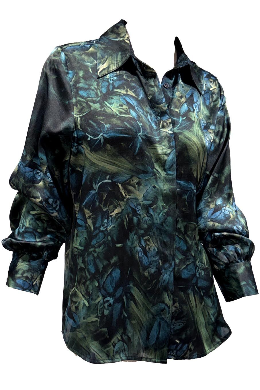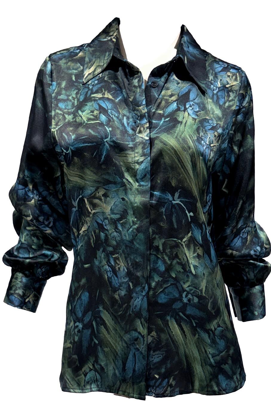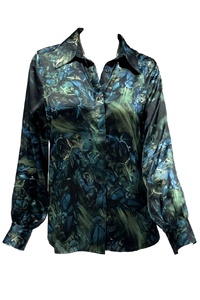 Crafted from luxurious 100% silk satin, orchideh Javad Ziaolhagh’s original watercolour artwork translated into soft, painterly digital tones. Elegant, breathable, and refined, this blouse brings artful sophistication to any wardrobe.