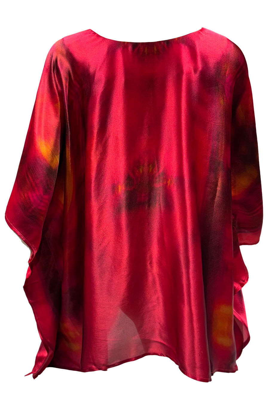 The Passion Red Silk Poncho by JAVAD is wearable art at its finest. Inspired by a photograph taken by Javad and reimagined through digital artwork, this poncho translates visual storytelling into timeless design.